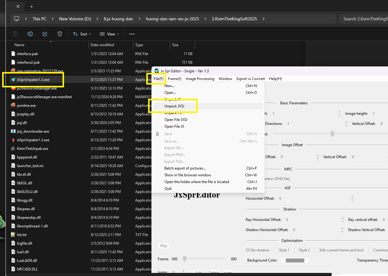 Bước 2: Copy JxSprEditor - Single - Ver 1.3 vào thư mục client (data)