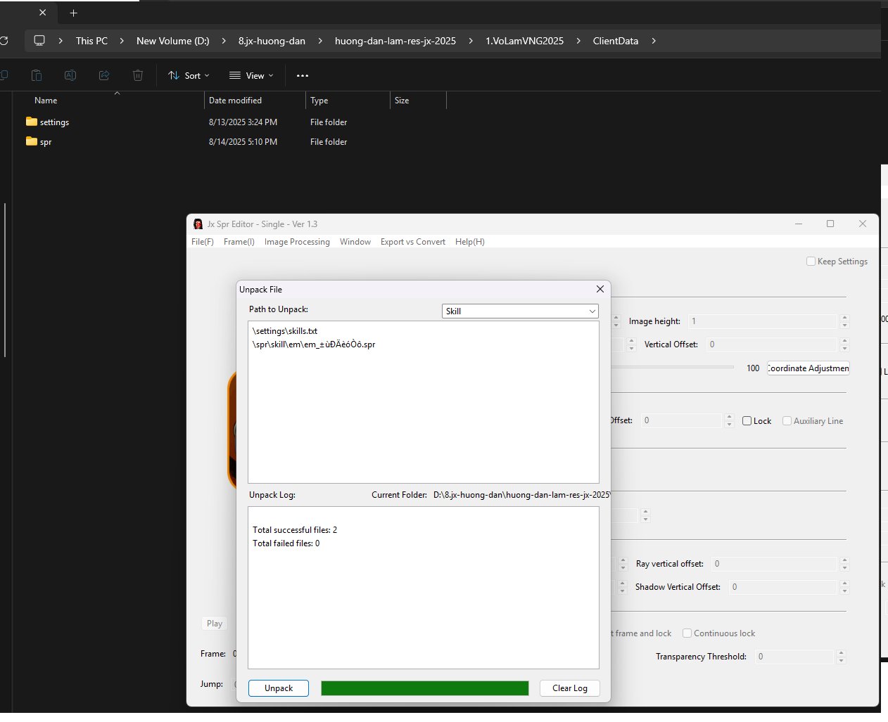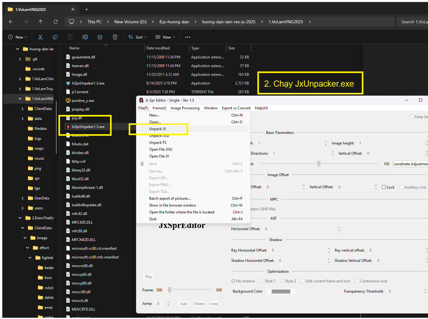 Bước 2: Copy JxSprEditor - Single - Ver 1.3 vào thư mục client (data)