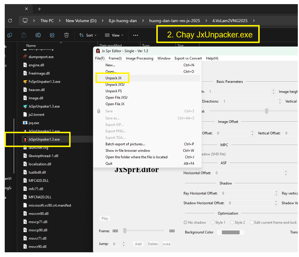 Bước 2: Copy JxSprEditor - Single - Ver 1.3 vào thư mục client (data)
