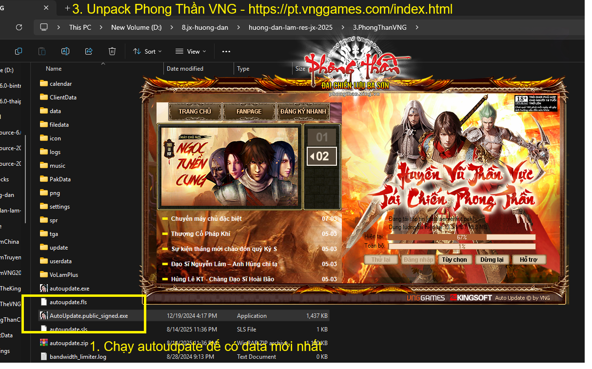 Bước 1: Tải game và chạy autoupdate mới nhất